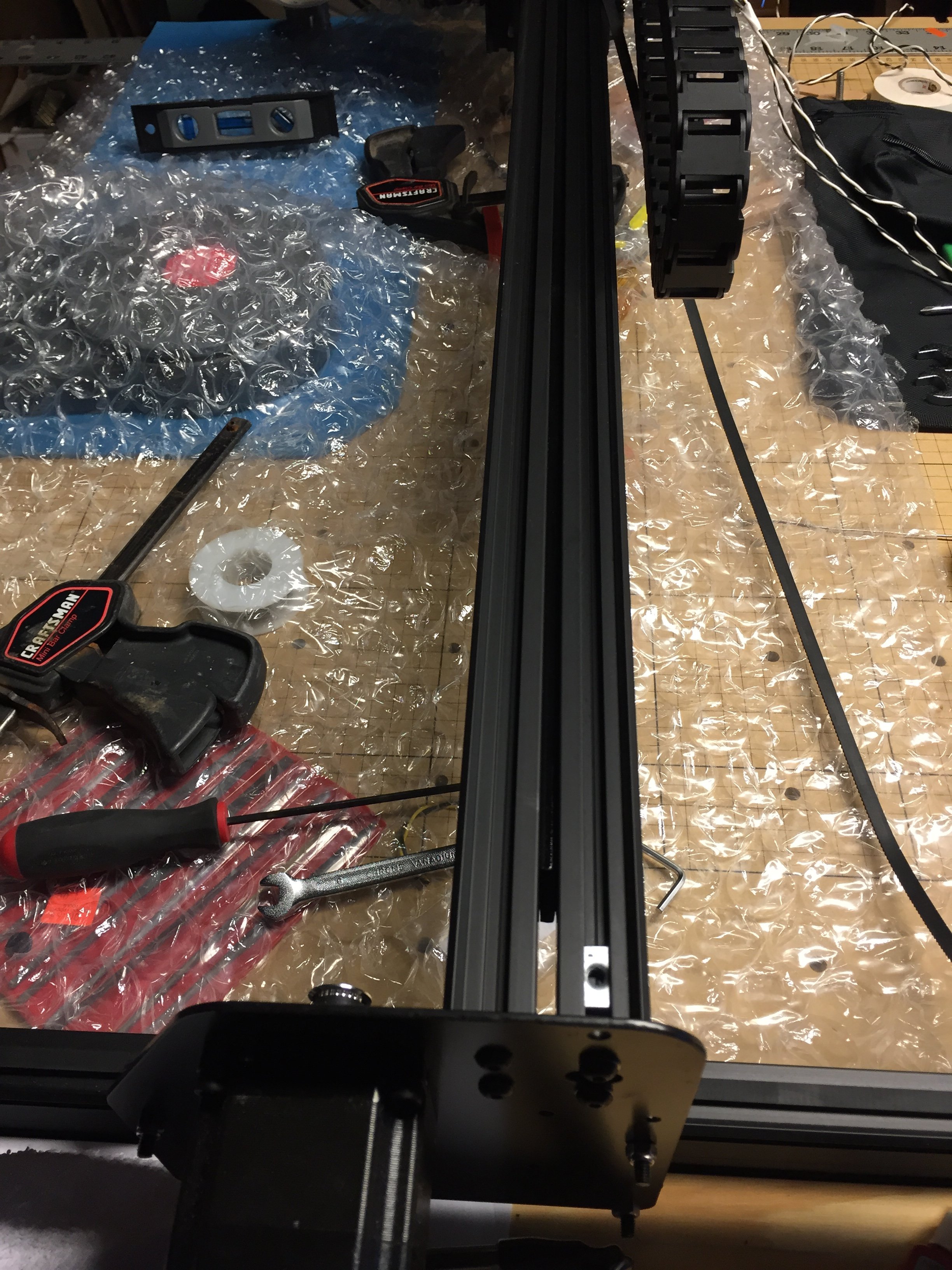 Same question for the fixation on the wall. Did you create a threaded hole throughout the V Slot profile? Is it (non-) advised?