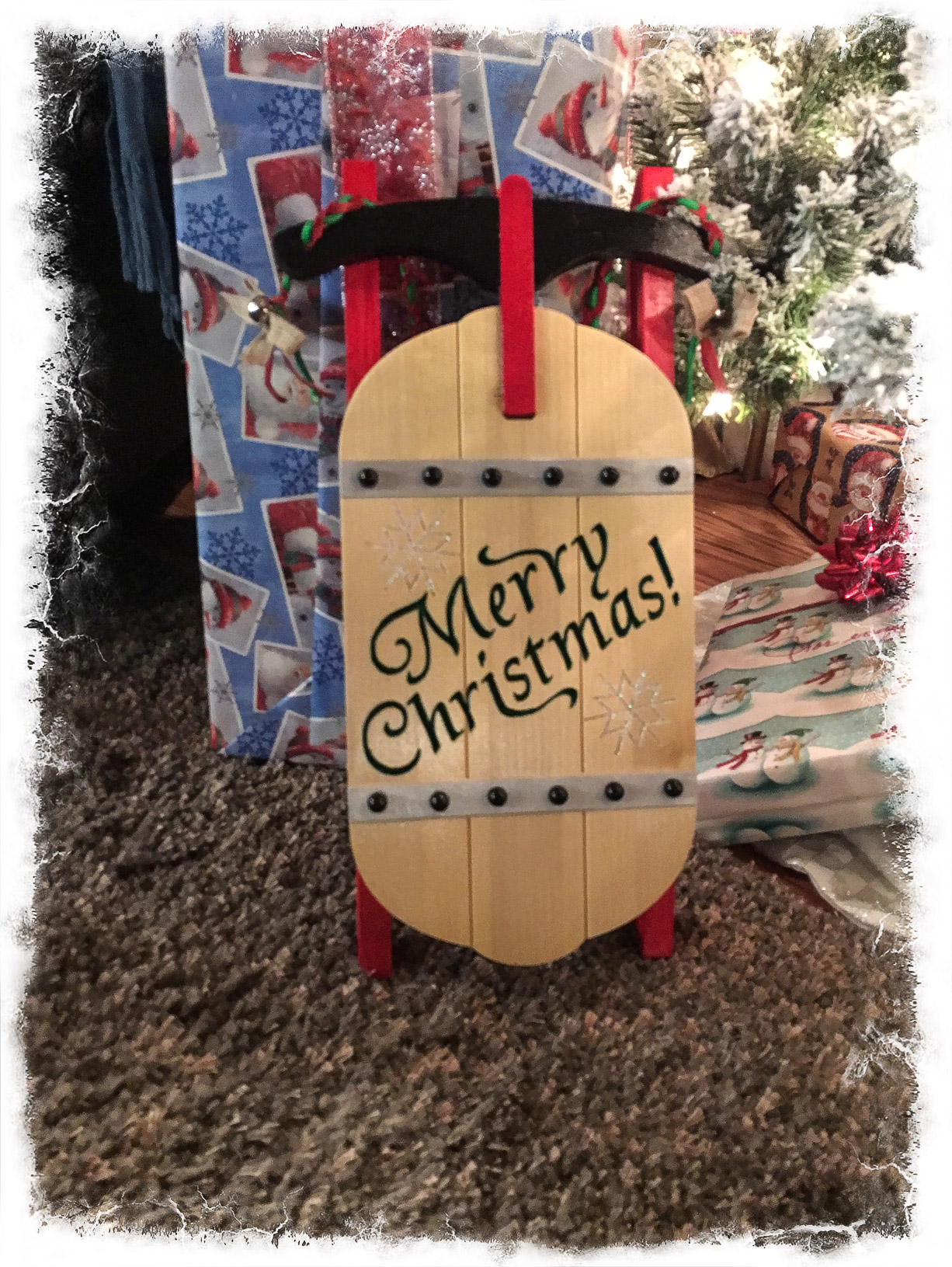 Free Merry Christmas Sled from Vectric that Musk-OX cut out and my wife Joy panted Christmas 2016.