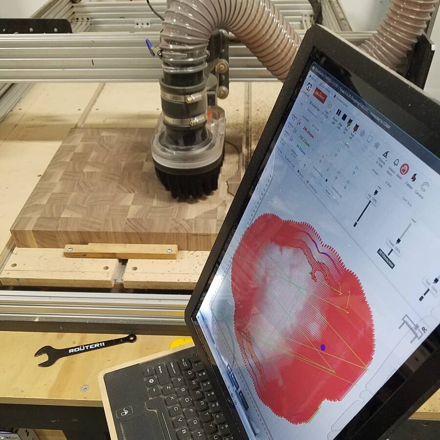 I decided I wanted something a little more compact to control my machine. I found a 7" touch screen on Amazon I could hookup to my laptop and I had a mini Bluetooth keyboard floating around. The screen is mounted up top off to the one side of the machine. It's plugged into my laptop, which is sitting in the drawer below. I programmed the keys from the mini Bluetooth keyboard so I can control the X,Y and Z movements...along with a few other functions. Here are the links to the screen and the keyboard: https://www.amazon.com/Longruner-Ra...24x600+lcd+display+hdmi+monitor,aps,49&sr=8-2 https://www.amazon.com/gp/product/B00BX0YKX4/ref=ppx_yo_dt_b_asin_title_o01_s00?ie=UTF8&psc=1
