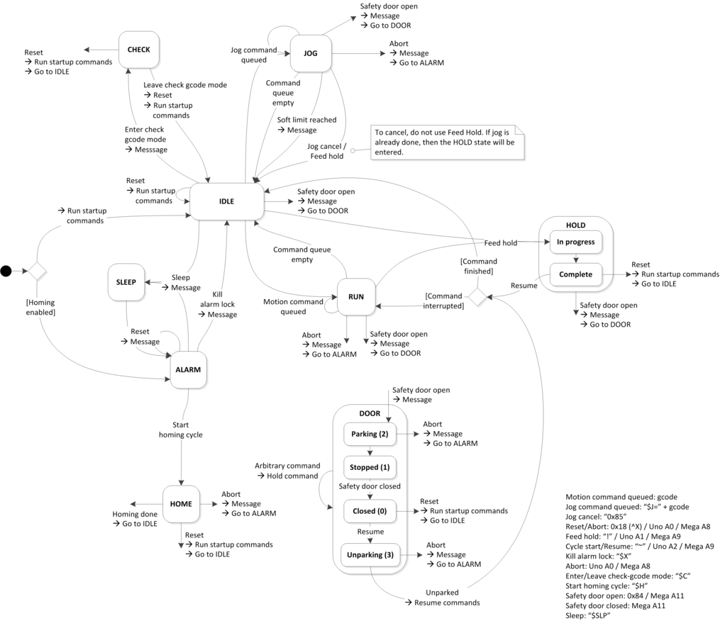 I have made a picture about the state machine of GRBL, from how I understand it from the wiki documentation. Probably nice to share and also hear if anything important is missing/incorrect. Grt, Patrick