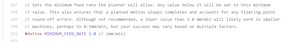 I have a question about feed rate precision. I have a camera gimbal that I want to use to track objects that more along a mathematically predictable path. I calculate the motion, getting azimuth and elevation numbers, on a 32-bit Arduino M0. I then send this information to grbl, running on an Arduino Nano. The "number cruncher" calculates the position every five seconds, and passes the "next" position to grbl using X for azimuth and Y for elevation. Units are in degrees. I have the steps-per-unit right, because the gimbal always moves to the right position. However, if I command a movement at a low speed, the movement occurs much faster than I command. I have tried G93 and G94 feed rate modes, but both exhibit the same problem. What should take exactly 5 seconds takes less than 3. I printed out '?' data and fed some of the numbers into a spreadsheet (included below). I've also attached a sample Gcode file. I got the status at 1-second intervals and calculated the actual movement during that time, based on the difference in position. As the speed increases, the "anti-lag" gets smaller. How can I make grbl stick to the commanded feed rate for small moves? Code: Actual Commanded X Y dX dY Dist Rate(deg/min) Rate -117.88 25.093 0 0 0 0 -117.683 25.43 0.197 0.337 0.3903562475 23.4213748529 17.44 -117.472 25.768 0.211 0.338 0.3984532595 23.9071955695 -117.275 26.116 0.197 0.348 0.3998912352 23.9934741128 -117.134 26.353 0.141 0.237 0.2757716447 16.5462986798 -116.938 26.69 0.196 0.337 0.3898525362 23.3911521734 18.64 -116.727 27.027 0.211 0.337 0.397605332 23.8563199174 -116.516 27.376 0.211 0.349 0.4078259433 24.4695565959 -116.333 27.68 0.183 0.304 0.3548309457 21.2898567398 -116.122 28.017 0.211 0.337 0.397605332 23.8563199174 19.97 -115.911 28.355 0.211 0.338 0.3984532595 23.9071955695 -115.686 28.704 0.225 0.349 0.4152420981 24.9145258835 -115.475 29.041 0.211 0.337 0.397605332 23.8563199174 -115.222 29.424 0.253 0.383 0.4590185181 27.5411110887 21.45 -114.997 29.773 0.225 0.349 0.4152420981 24.9145258835 -114.772 30.11 0.225 0.337 0.4052085883 24.3125152956 -114.547 30.459 0.225 0.349 0.4152420981 24.9145258835 -114.463 30.582 0.084 0.123 0.148946299 8.9367779429