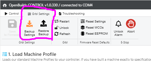 So I believe that I have all the grbl settings, can you assist me on importing them in to Openbuild software?