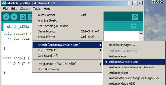 on selecting a serial port: @Joe Pineapples When the Arduino is plugged in to the USB port, it creates a serial port (USB can do many things, serial ports are jut one of them) Here is what it looks like with no Arduino plugged in, my PC has an actual serial port COM1 and COM3 is a virtual port for virtual machines. and when I plug in an Arduino UNO that has appeared as COM11, they usually have high numbers