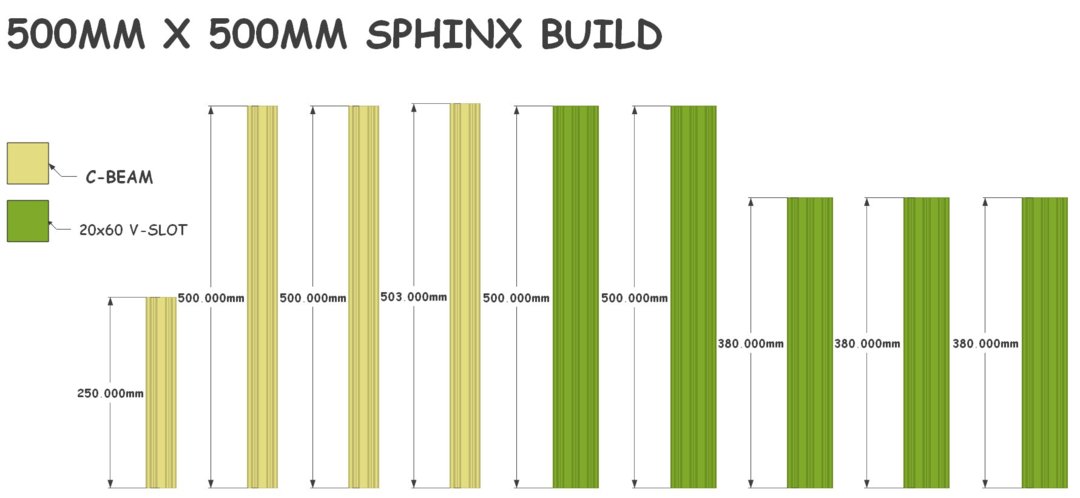 Here is a quick set of drawings going over the most common build sizes I think one would undertake. I believe for aluminum the ideal size is as per the original build at 500x500. I would probably chose either a 750x500 or 1000x750 if I was to start another build today, this would allow more flexibility with some projects / builds I have in the works. :D