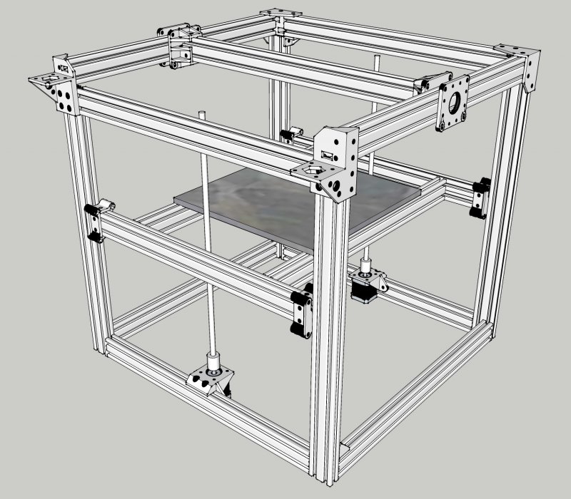 A robust Core XY style 3D printer that has a clean parallel belt implementation and whose dimensions are adaptable to meet builder's needs. The use of open builds V-slot and other open hardware make customization easy.