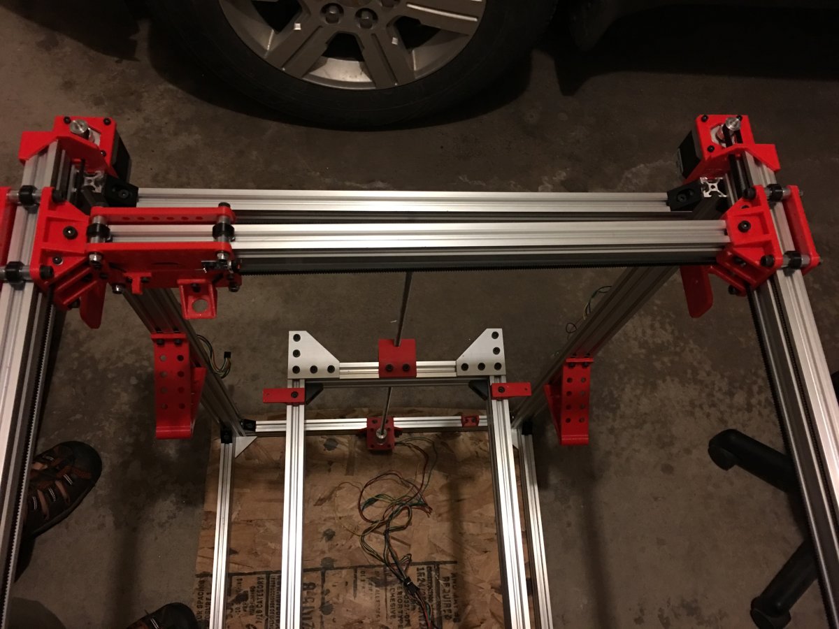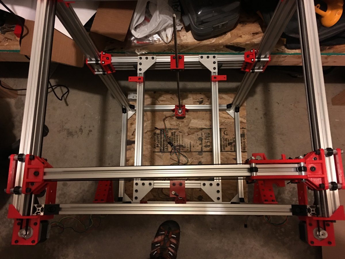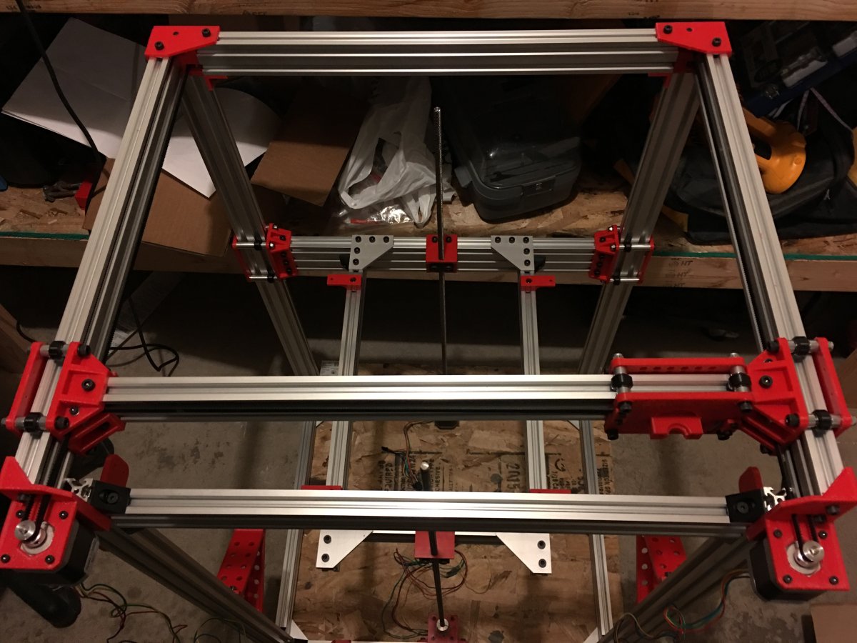 A robust Core XY style 3D printer that has a clean parallel belt implementation and whose dimensions are adaptable to meet builder's needs. The use of open builds V-slot and other open hardware make customization easy.