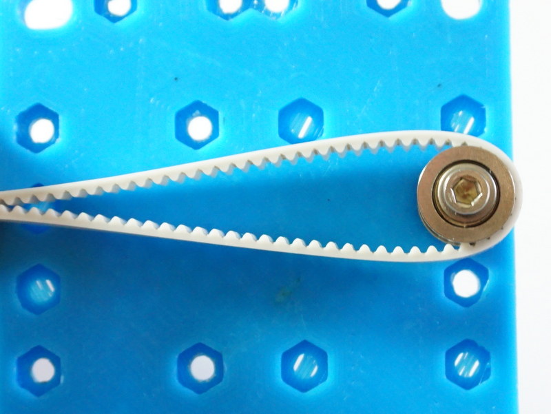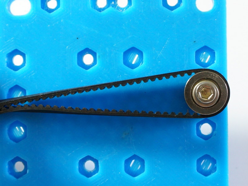 Running a quick 90 degree test, which I can't photograph without making some sort of vice rig to hold everything, it looks like there's still a tendency for the white belts to want to go a little wider around the bearing until a very unnatural amount of tension is applied to them and even then I'd question if they're really going completely straight. It is more force than I'd feel comfortable applying to the stepper mounts though unless there was a way to keep them from tilting inward.
