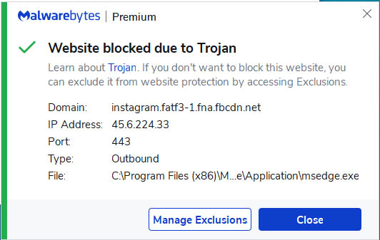 I have been getting this message everytime I click on your site for the last few days from Malwarebytes 4.4.6. This is while using MS edge or firefox browser.
