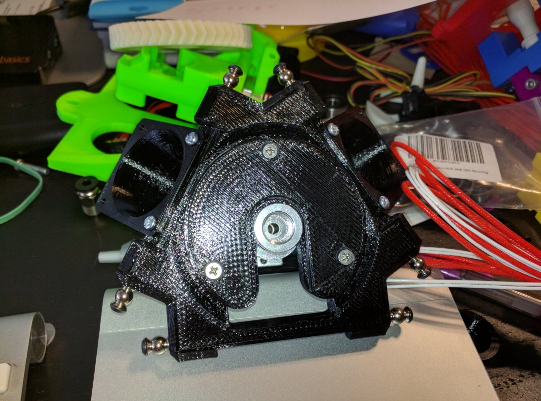 Yep. Visually it looks great, yet there's a pretty good effector tilt from one side of the plate to the other (like 3mm+). Which maybe I could dial out in software, but it's bad enough I want to fix the hardware side instead. I'm printing on a Lulzbot mini. I think the issue really was I printed the vertexes from different filament types and experimented with different infill and speeds while printing... which made them non uniform enough that over 1.5m it got pretty bad. 6 Vertices is >1kg of filament though, may end up doing 3 in one roll and 3 in another to match.