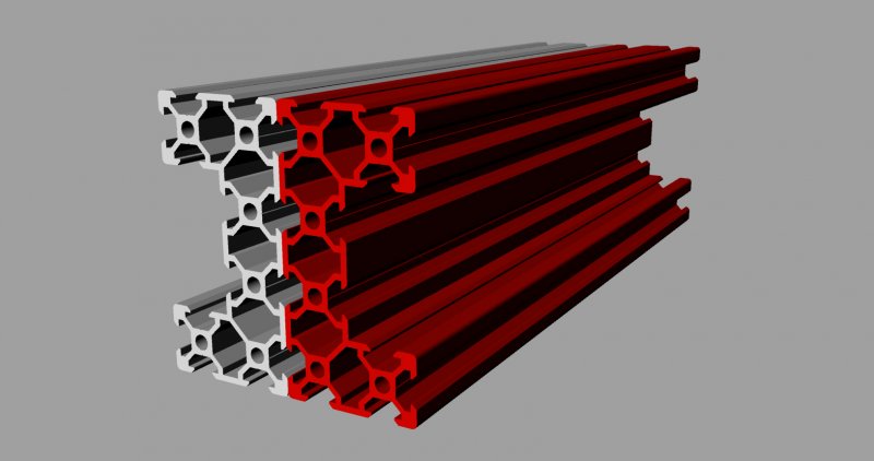 Yeah just an idea and incorporated some of the already used belt and pulley arrangements. In comparison to bolting standard 20x80 profiles together, the bolting procedure is going to be the same as in a standard ox. And giving the same arrangement 4 extra 45degree angles will at minimum improve strength 4 fold. So it's a great idea.