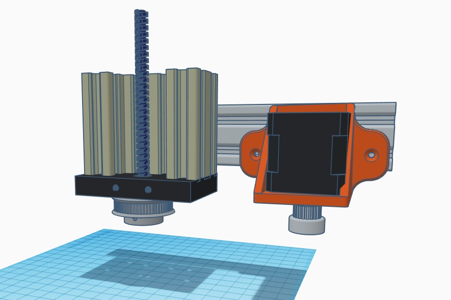 I have a nema 23. 20 tooth gears. 2mm pitch leads. I will be cloning your drive system, with some small modifications