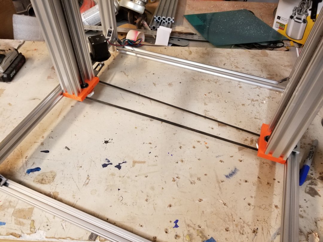 Ok, sorry for the delay, here are the 2 3d printed pieces: Pulley Mount for D-bot z transmission by tmproff Cbeam Endmount by tmproff The Cbeam endmount just uses a standard 608 bearings (8mm ID) Yes, I'm using 20 tooth pulleys for the x/y for the leadscrews, I use these : https://www.amazon.com/gp/product/B017AR5QBS/ref=oh_aui_search_detailpage?ie=UTF8&psc=1 here is the stepper and driver I used: https://www.amazon.com/gp/product/B019MFIOD8/ref=oh_aui_search_detailpage?ie=UTF8&psc=1 https://www.amazon.com/gp/product/B016ZJS1FA/ref=oh_aui_search_detailpage?ie=UTF8&psc=1 I'm not sure the belt length for the z, If I had to guess, it's around 1700mm