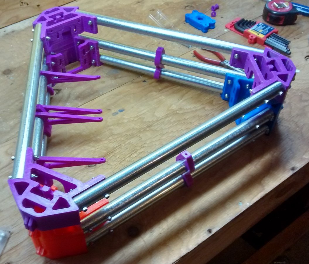 Delta 3d Printer using 3/4" Electrical Metal Tubing (EMT) for Horizontals & 2060 V-Slot for the Verticals and adding a tetrahedron at the top.