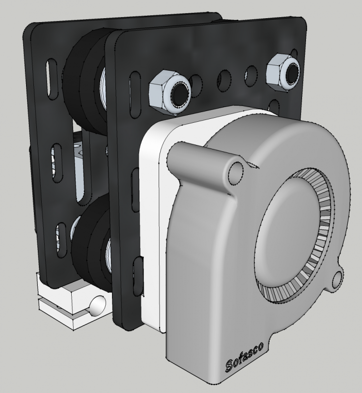 Also love the snap-fit solution. I'd be happy to test it out on my plate - could you upload the skp or stl? I have a different fan/duct mount in mind for mine (integrated w/hot end) as I plan to use the other side for additional hot ends (for future quad printing or a direct drive setup). Snap pegs might work for a quick release on my hot-end mount but I would like to try it out first.
