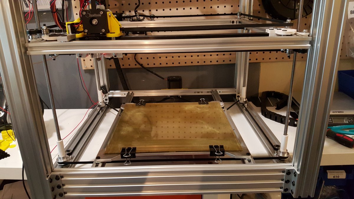 Hi Adam, Well, I've gathered 90% of the pieces and parts to start building this printer. I've been printing the parts with the .stl's from ThingiVerse and doing some initial fitting of the extrusions together. Of course I've had to "undo" them a couple of times or so to insert T-nuts for components yet to come, but those kinds of things are par for the course. So I'm making progress. One thing: there are 4 z-screw supports along the top frame that you didn't supply an .stl for - is there any chance of getting you to add that to the files in ThingiVerse? I could draw them up, as an "exercise for the student", but if you still have them handy . . . Thanks Gary