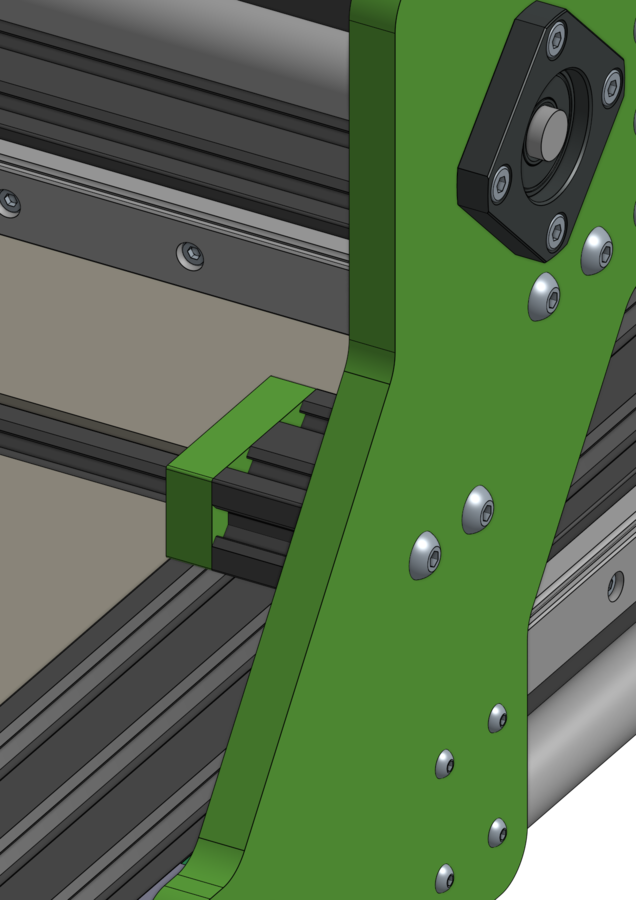 Nice clean design, and just the design methodology I am interested in for building a machine too. With cheaper sources of profiled linear rails and ballscrews now available it makes sense to use the correct components to give a robust, low maintenance machine. It seems a little ironic to be using V- slot, (developed for wheel based linear motion) for mounting profile rails. Is there a reason to still use V-slot over T-slot? Only other observation is that whilst 1605 ballscrews seem common on metal cutting machines, 1610 seems more common for wood cutting ones (you want the greater speed) Please share more of the design and the thinking behind your decisions. Thanks