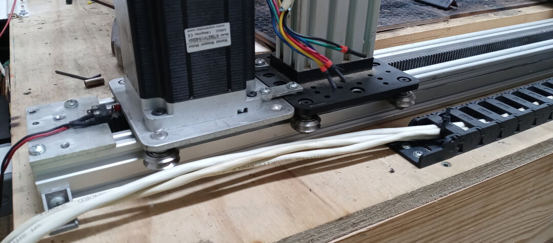 I built this cnc using 2 z axis actuators thinking it would minimize deflection and it seems to be very sturdy. I used 2 1500mm c channels for my x axis, 1 1500mm c channel for my y axis, nema 23 stepper motors, dm556 drivers, 2 24v power supplies, smc5-5-n-n controller, 9mm wide belts, and the Hitachi m12vc router. So far it's working very well with a few hiccups. Programming the controller was a learning experience but I'm very happy with it.