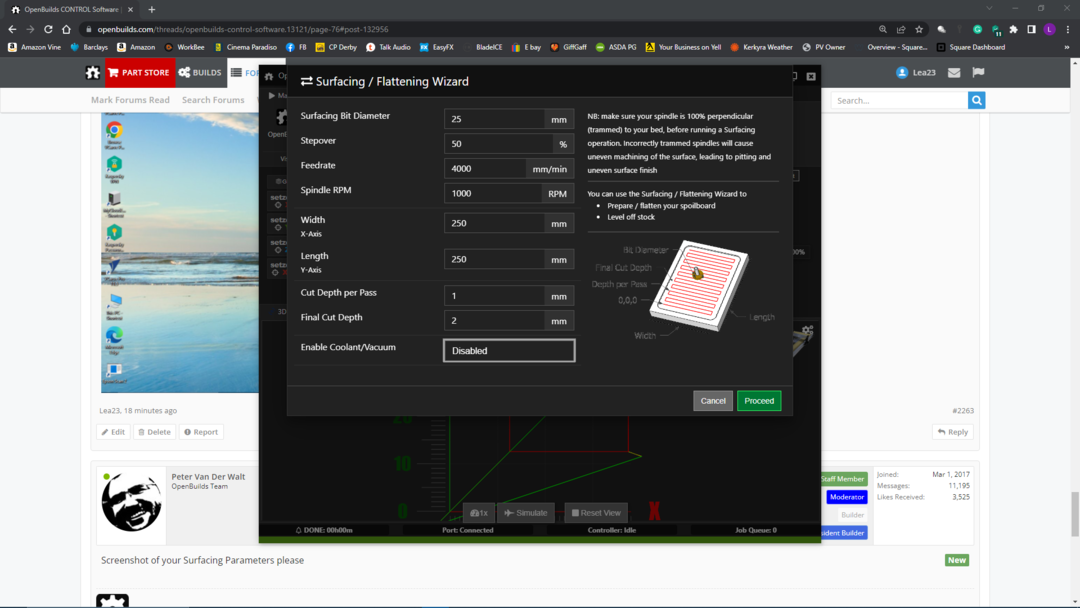 Hi Guys, Updated Oenbuilds Control again today and have got another error pop-up on the surfacing wizard. See the picture attached. The surfacing wizard runs but fails with the router not switching off, I have to end the wizard with the OK button, any help is greatly welcome.