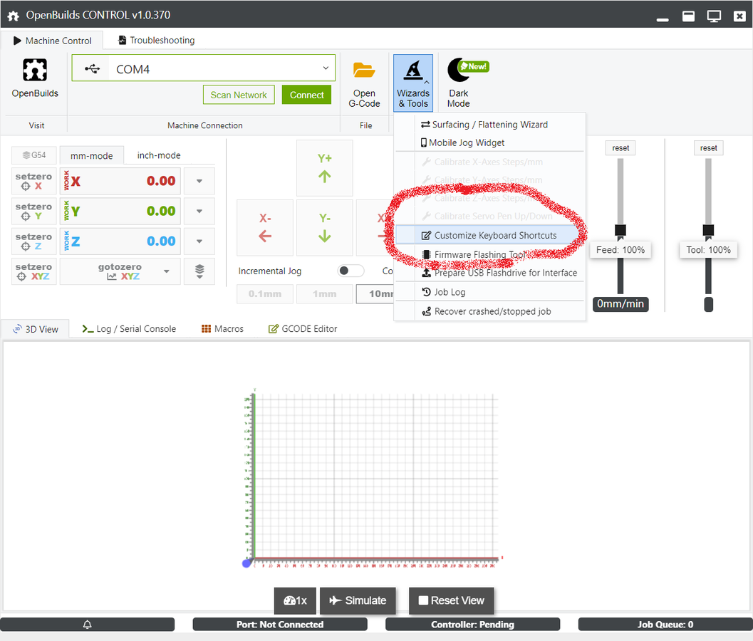 Is it possible to change the shortcuts for the jogging etc? I messed up a job hitting the down-arrow on the keyboard... My bad! Thanks again for the great software and controller.
