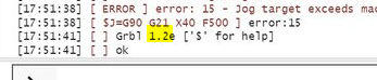 Hi to everyone! I explain my problem. I need to finish the configuration of my 2 axis Grbl cnc machine. My setup includes a Pibot controller board rev 2.3, two stepper motor drivers and four optical endstops, two for each axis. I'm using the software 'Openbuilds controller' to control the board and I have uploaded Grbl 1.1e firmware version on the microcontroller. If you look at the screenshots I attach in this message, you can see that I set a maximum travel of 300mm on X in 'Grbl settings' but, when I give the command for a 150mm jog along X, the software displays 'error 15...'...WHY?! I think this problem is connected with the firmware. What do you think? Can anyone help me, please? Thanks a lot!