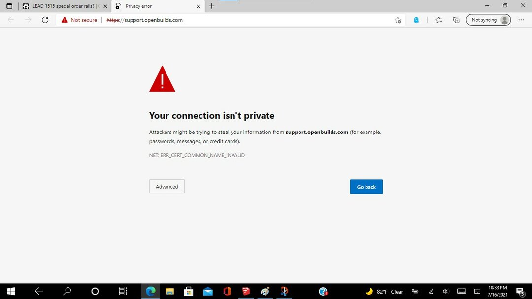 @Peter Van Der Walt in the thread LEAD 1515 special order rails? you posted a recommendation to visit the support page. When visiting this page I get: System: Windows 10, Edge Version 91.0.864.67, Norton AV, Malwarebytes