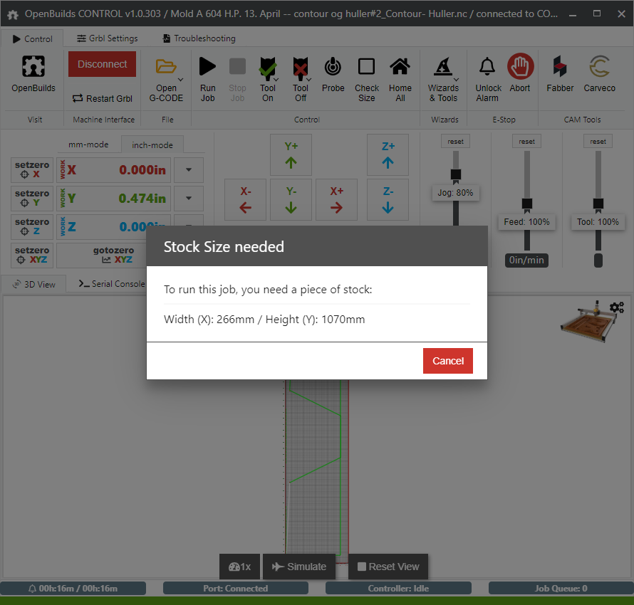 Yes, thanks! I was wondering if in this screen the information on the size of the piece would come out, also including the depth of the Z, and the information on the cutter to use (if they exist in the original Gcode). For example To do this job you need a piece of this size x ---- y---- z--- and these tools (tool size),(tool name) Are you saying it can be done?