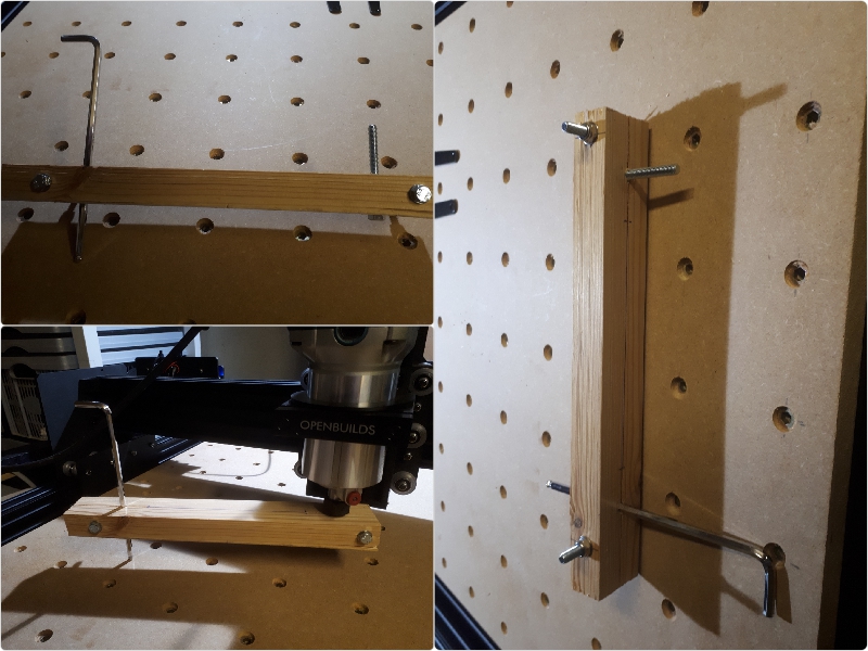 OK Guys now that I have (eventually) got my machine moving and surfacing the Spoilerboard. There may be some little lines or ridges in the new surface, now they are hardly noticeable and when you rub the surface they are very very minimal, to say the least, but they are there visually. So I'm thinking that the spindle in the "Z" axis mount is ever so slightly off. (I mean slightly). That said, I have made this crude wooden contraption (from plans on the web) to help me try and maybe correct that...