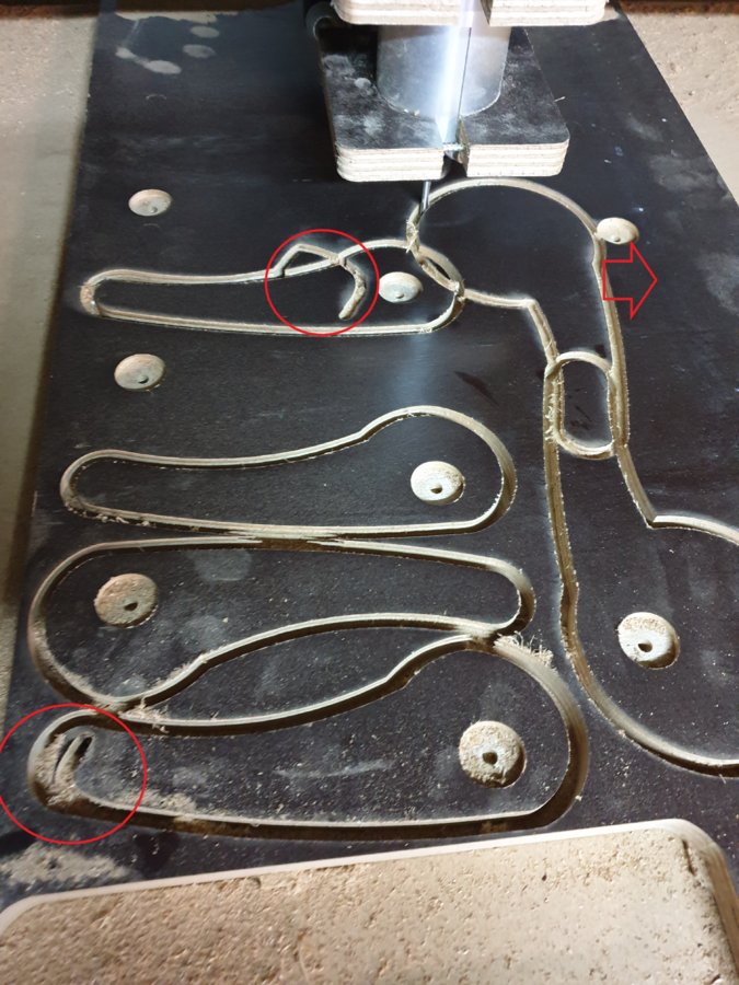 Hi @Benjamin Vg, -> Are they some other/better tools I can try for it - for the Duet controller no. Is your router cable well away from any other wiring? - it's important to keep any mains wiring well away from any low voltage wiring - interference can cause all sorts of weird problems (you probably knew that) but on the bottom left it was really as if he "forgot" to move up the router before moving - that and the mis-positioning of the two clamps on the right was why I suspected interference -> What is the purpose of those changes wht did they do that? Does it have an impact of the g-code product by my CAM software? - most hobby cnc machines use the grbl subset of g-code. The Duet uses the rep-rap subset (developed for 3D printers as was the Duet) It shouldn't have an impact on your g-code as long as you use a post processor that has been written for the Duet - you are correct to follow the recommendations on the Ooznest site. I think the reason why Ooznest use "non-standard" machine and workplace co-ordinates is because the way the Duet used G53 was a bit odd to start with (I believe that may have changed now) What software do you use with your machine in place of vetric? - I use Fusion 360 - it is complex and takes a while to learn, but very powerful. Another alternative is Sketchup - search the forum and you will find references to where you can download it if you are interested. There is a plug-in for Sketchup for generating g-code, but I don't know how compatible that is with the Duet because I haven't used it. I have asked a friend who uses Vectric software for some example files to check that the g-code output you got is the best that it can do for the Duet - will let you know later if there is anything different you can do. Alex