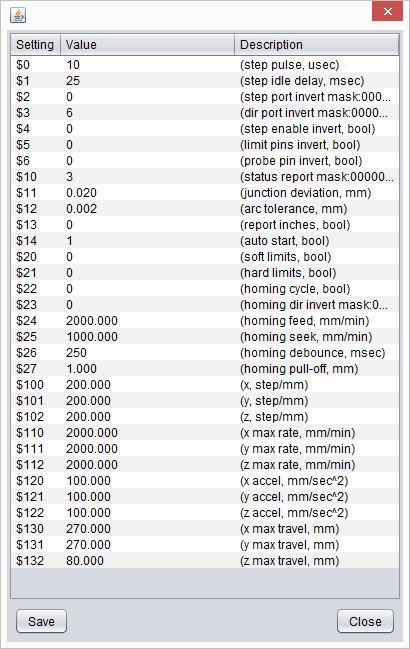 Hi, I don't have any settings shown on the "GRBL Settings" window even when I am connected via USB Cable and I click "Get Grbl Settings". Below is the screenshot of Sample grbl settings I had before.